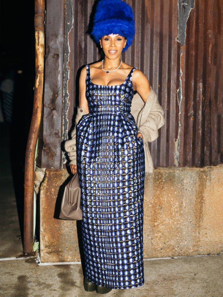 Fashion Influencer Jeneé Naylor giving us an edgy twist in a ballgown inspired look for the Christopher John Rogers show.